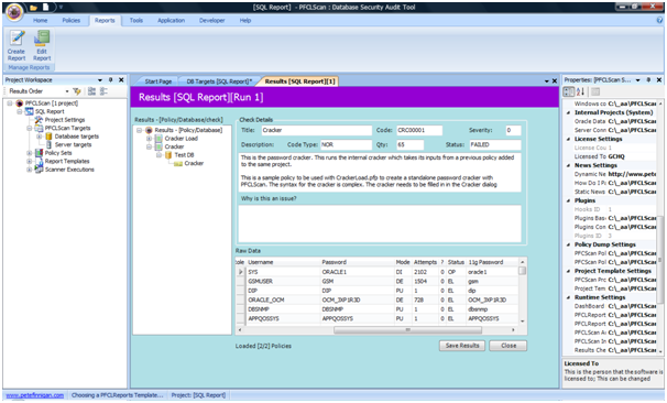 Now, normally we could run a report that creates a nice HTML report that we have the option to save as an MS Word document or save as a PDF for distribution. Because we want to save the cracked password data to a database (in this example we use the same database; that is just for ease of this example and would not be the case in a real scenario as we would not advise storing the cracked passwords into the database that was analysed. This is just an example for the technique).